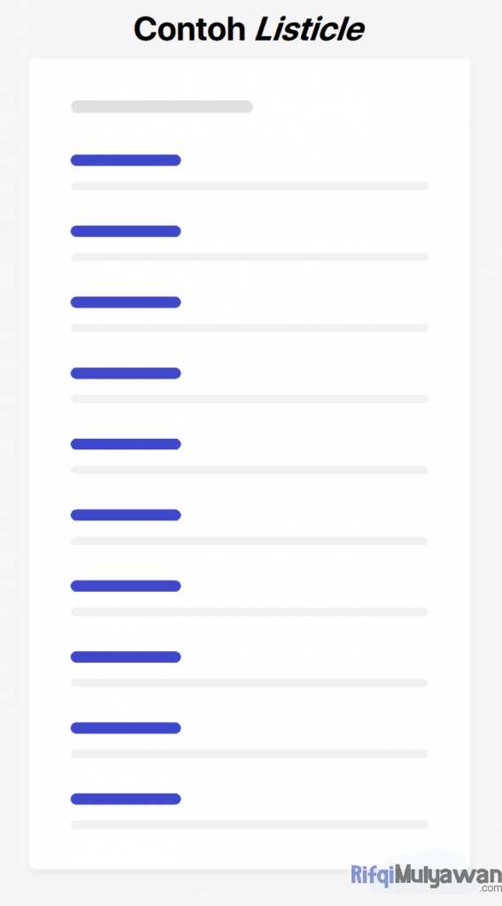 Di atas adalah gambar contoh listicle atau listikel sederhana (dalam format yang pada umumnya sering digunakan).