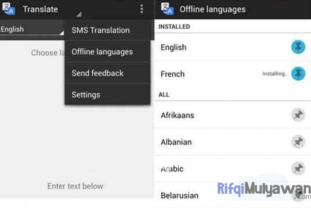 Aplikasi terjemah offline dan online yang pertama adalah Google. Google merupakan masalah besar teknologi yang memiliki akar tersebar di setiap domain. Dalam hal ini, layanan populer yang mereka tawarkan adalah Google Translate yang merupakan penerjemah seluler dengan antarmuka yang sangat sederhana. Ia mampu mereproduksi terjemahan dengan keras dan mendukung lebih dari 60 bahasa sambil menawarkan metode input dan penerjemah SMS yang berbeda.